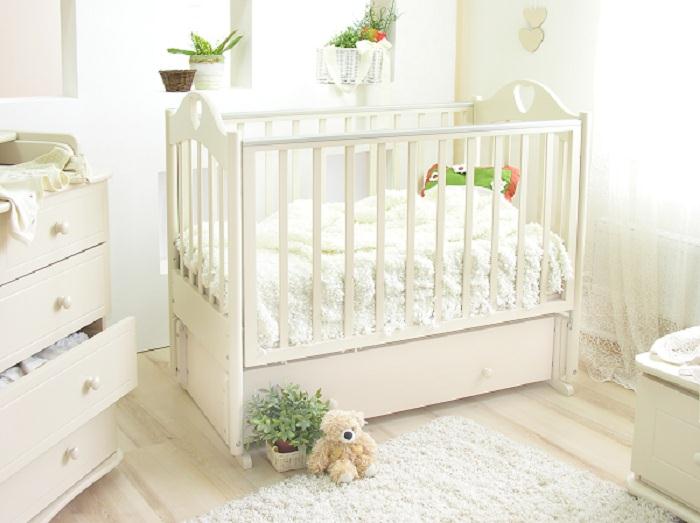Кроватка С 646 "Альбина" необычного дизайна с вырезанным в верхней спинке сердечком станет украшением интерьера детской комнаты: